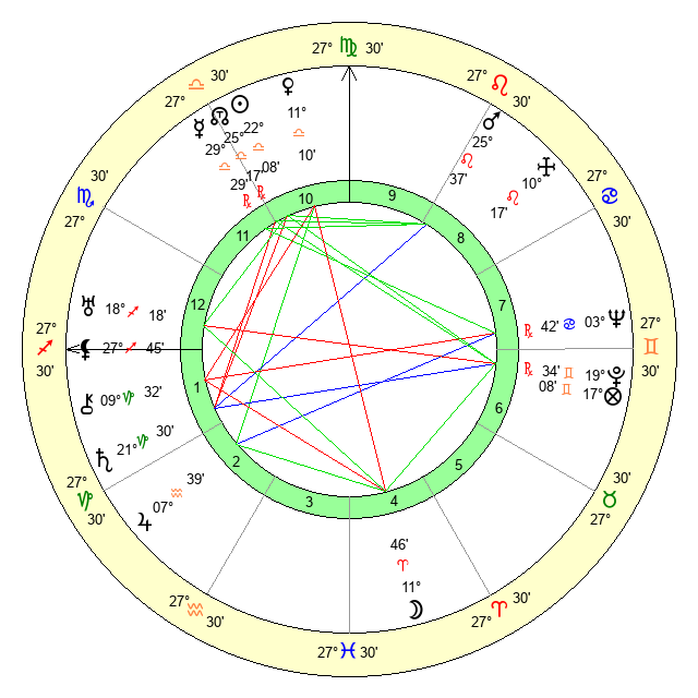 | Moon | 11 Aries 45 | 26 Leo 9 | 24 Libra 8 |