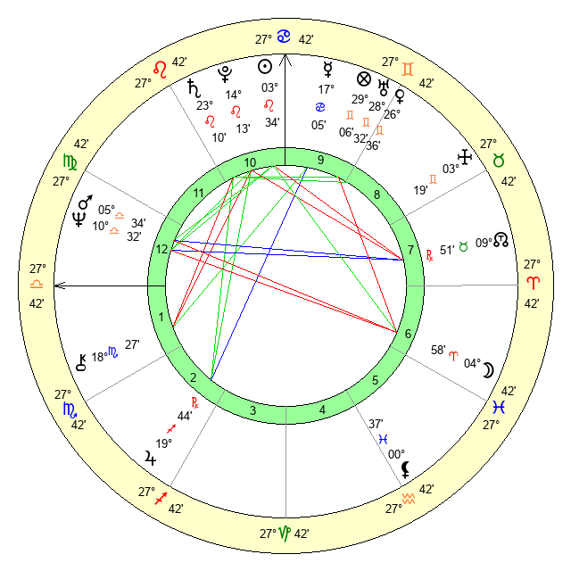 | Moon | 4 Aries 56 | 27 Leo 48 | 8 Aquarius 18 |