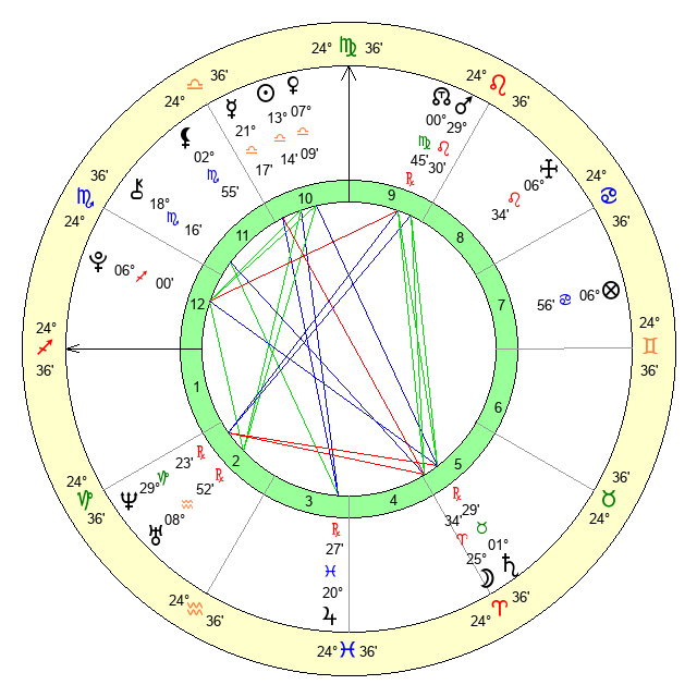 | Mars | 29 Leo 30 | 9 Scorpio 46 | 15 Virgo 45 |