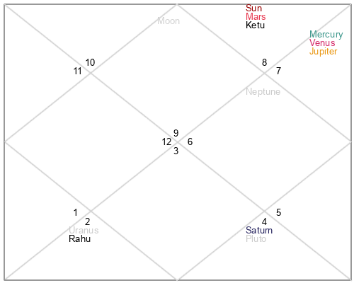 | Ketu | 12 Sagittarius 1 | 14 Virgo 2 | 7 Sagittarius 50 |