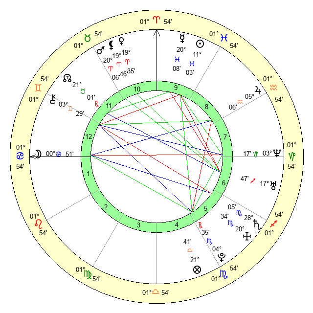 | Moon | 0 Cancer 45 | 4 Aries 18 | 2 Capricorn 17 |