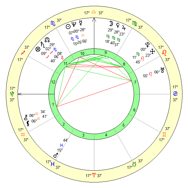 | Moon | 29 Virgo 15 | 19 Aquarius 41 | 0 Aries -41 |