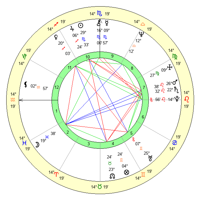 | Moon | 19 Pisces 38 | 27 Sagittarius 9 | 3 Aquarius 23 |