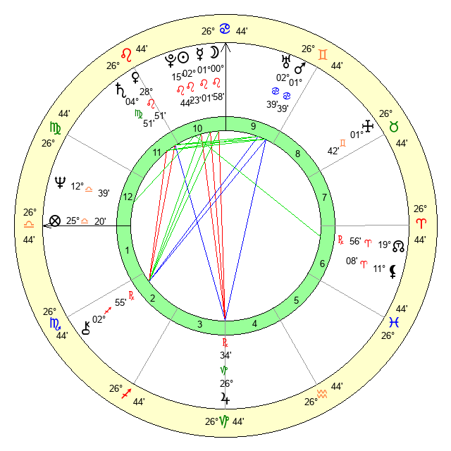 | Venus | 28 Leo 51 | 23 Gemini 43 | 29 Scorpio 10 |