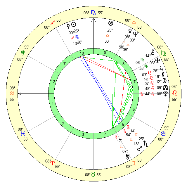 | Moon | 12 Leo 9 | 9 Scorpio 28 | 13 Leo 7 |