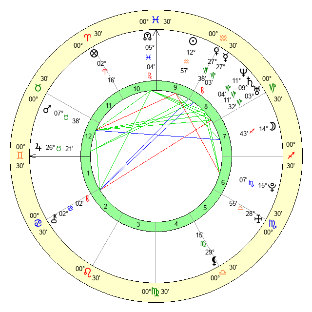 | Venus | 27 Capricorn 38 | 28 Pisces 6 | 12 Pisces 38 |