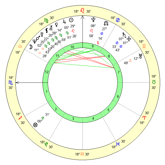 | Moon | 11 Libra 32 | 23 Leo 4 | 2 Libra 6 |
