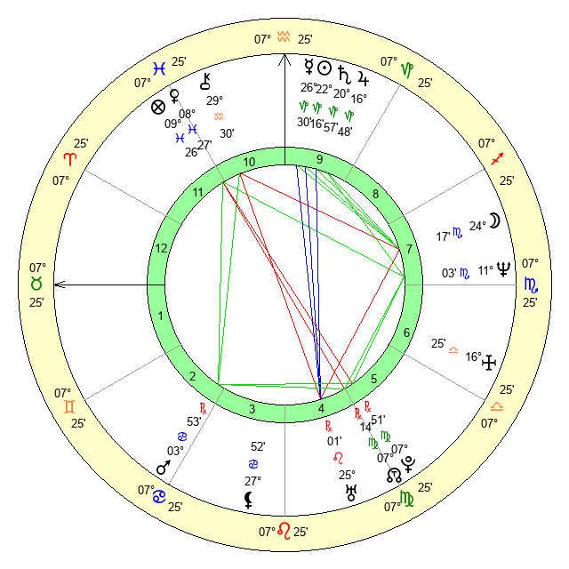 | Moon | 24 Scorpio 19 | 14 Scorpio 50 | 23 Aries 25 |