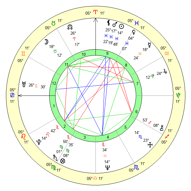 | Saturn | 2 Virgo 23 | 21 Pisces 11 | 0 Virgo 8 |