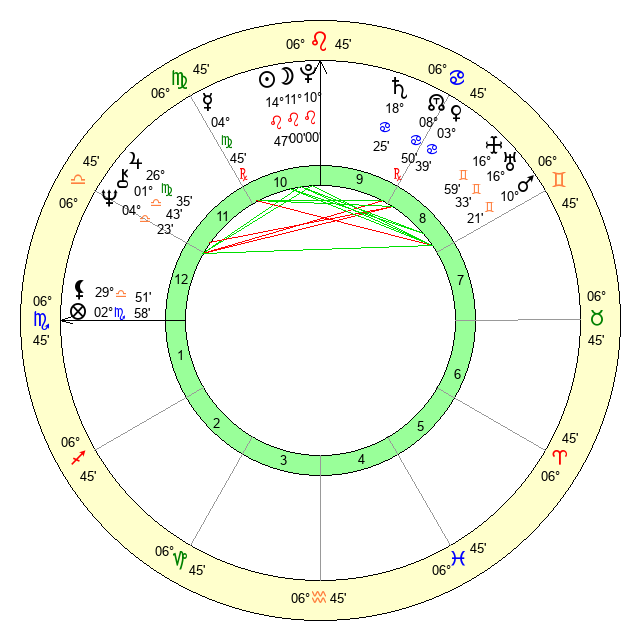 | Sun | 14 Leo 48 | 15 Leo 26 | 2 Scorpio 55 |