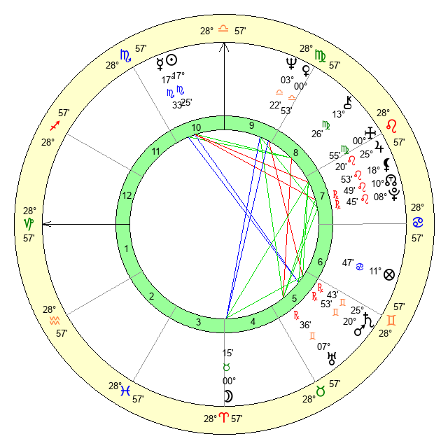 | Neptune | 3 Libra 24 | 29 Pisces 36 | 4 Libra 5 |