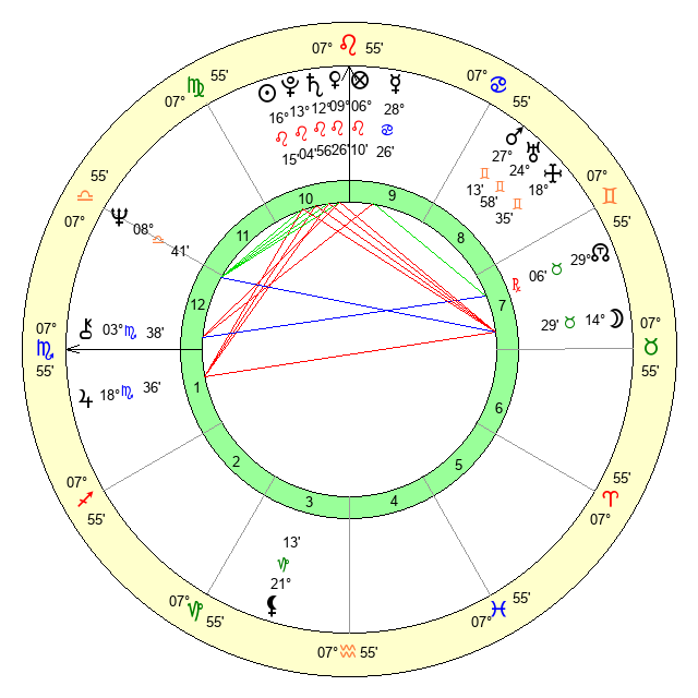 | Venus | 9 Leo 27 | 11 Cancer 6 | 16 Scorpio 24 |