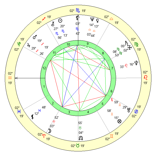 | Saturn | 5 Virgo 36 | 25 Pisces 16 | 5 Virgo 10 |