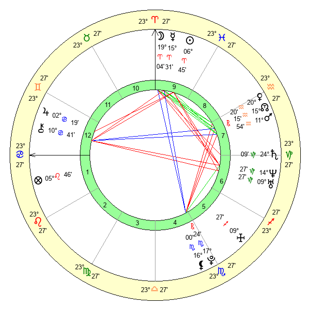 | Moon | 19 Aries 3 | 12 Pisces 58 | 9 Leo 27 |