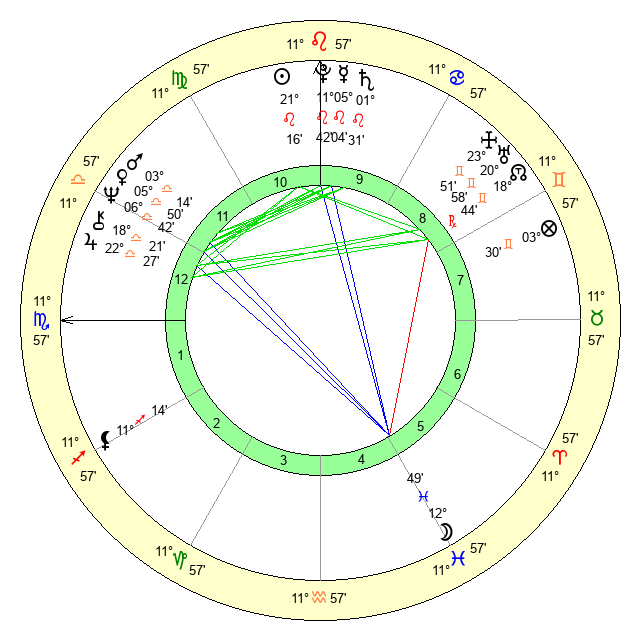 | Sun | 21 Leo 17 | 22 Leo 9 | 8 Scorpio 40 |