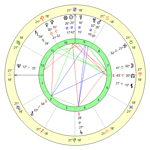 | Sun | 25 Cancer 43 | 26 Cancer 19 | 9 Libra 10 |