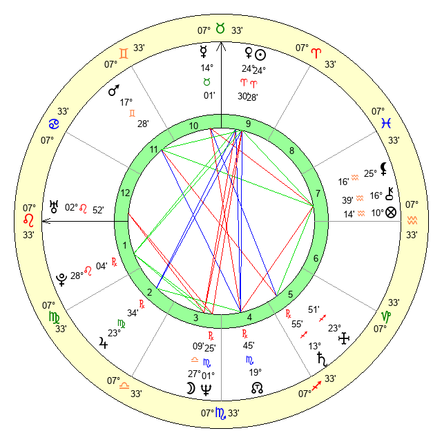 | Uranus | 2 Leo 53 | 25 Taurus 27 | 5 Leo 1 |