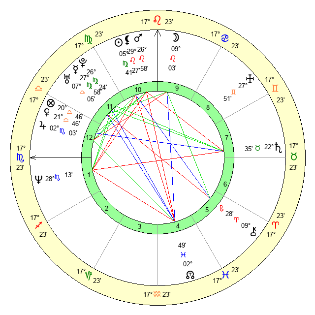| Moon | 9 Leo 3 | 16 Scorpio 39 | 14 Leo 23 |