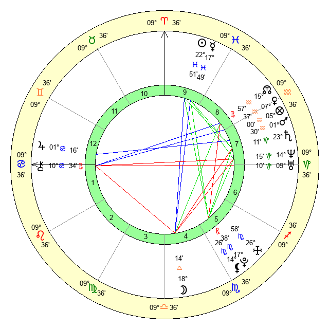 | Moon | 18 Libra 9 | 16 Virgo 46 | 20 Capricorn 31 |