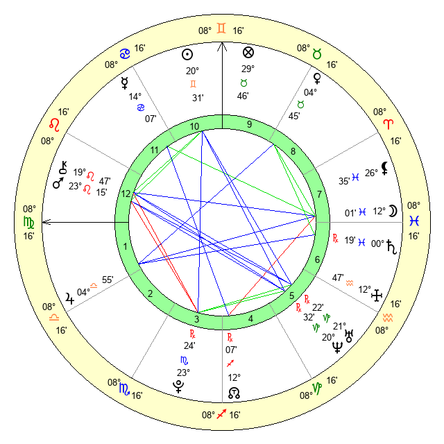 | Moon | 12 Pisces 0 | 22 Sagittarius 23 | 7 Taurus 38 |