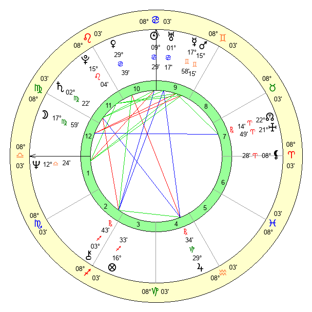 | Sun | 9 Cancer 30 | 10 Cancer 6 | 22 Virgo 30 |