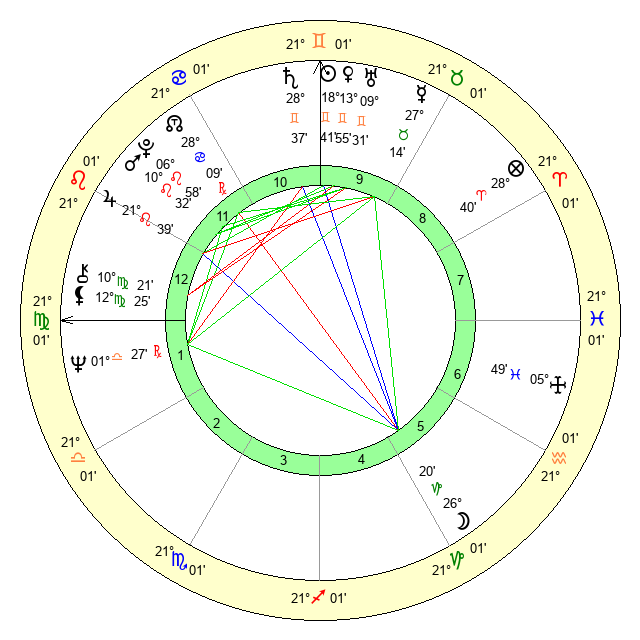 | Sun | 18 Gemini 42 | 19 Gemini 6 | 6 Virgo 12 |