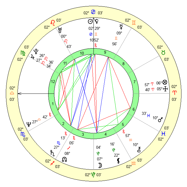 | Jupiter | 27 Leo 24 | 3 Cancer 9 | 11 Virgo 5 |