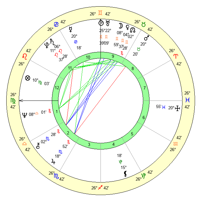 | Sun | 25 Gemini 39 | 26 Gemini 45 | 10 Virgo 21 |