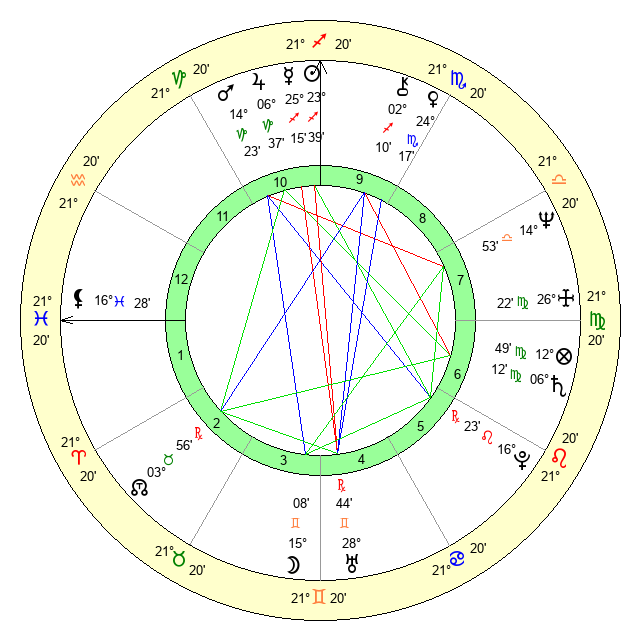 | Moon | 15 Gemini 8 | 6 Scorpio 26 | 12 Aries 27 |