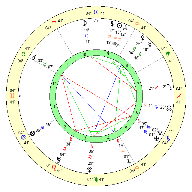 | Moon | 14 Pisces 13 | 9 Aries 21 | 13 Virgo 30 |