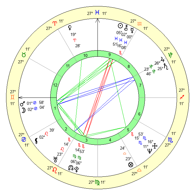 | Sun | 5 Pisces 51 | 6 Pisces 20 | 9 Taurus 8 |