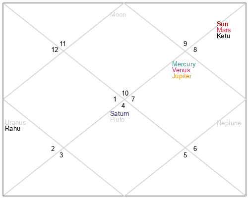 | Ketu | 11 Sagittarius 51 | 13 Virgo 52 | 7 Sagittarius 40 |