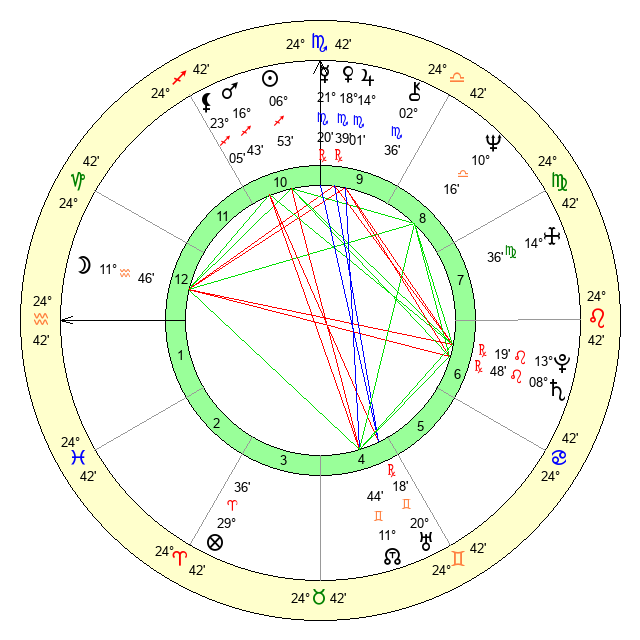 | Moon | 11 Aquarius 46 | 25 Pisces 25 | 8 Capricorn 10 |