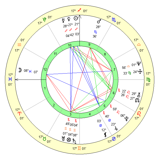 | Neptune | 1 Libra 57 | 29 Pisces 22 | 1 Libra 7 |