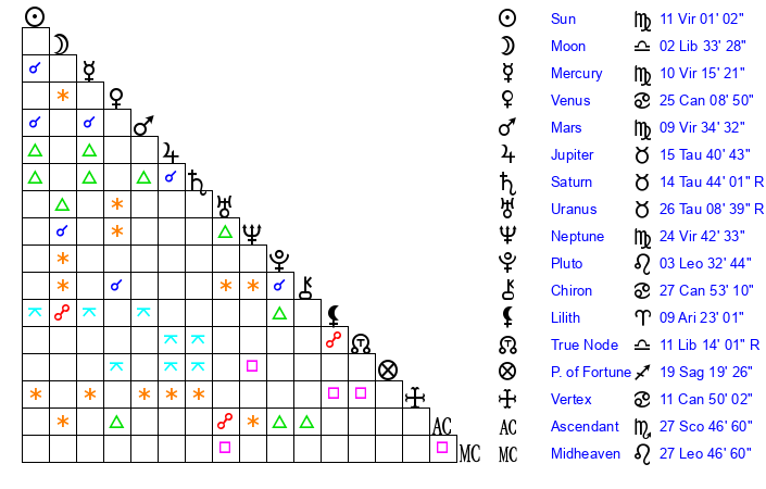 | Mercury | 10 Virgo 16 | 2 Virgo 12 | 15 Scorpio 20 |