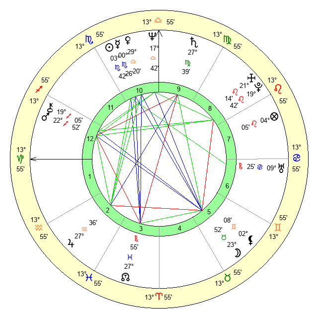 | Saturn | 28 Virgo 8 | 25 Pisces 54 | 2 Libra 53 |