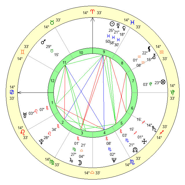 | Neptune | 2 Scorpio 7 | 29 Pisces 28 | 0 Scorpio 24 |