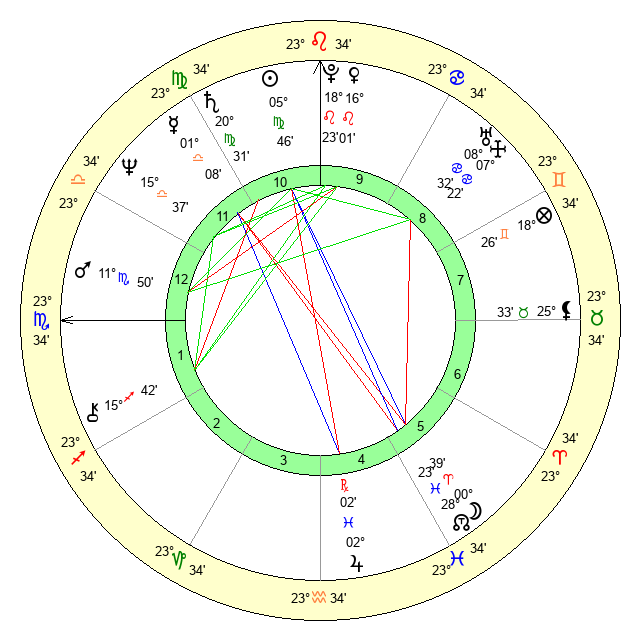 | Sun | 5 Virgo 46 | 6 Virgo 36 | 19 Scorpio 45 |