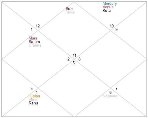 | Sun | 3 Pisces 58 | 5 Pisces 20 | 23 Taurus 45 |