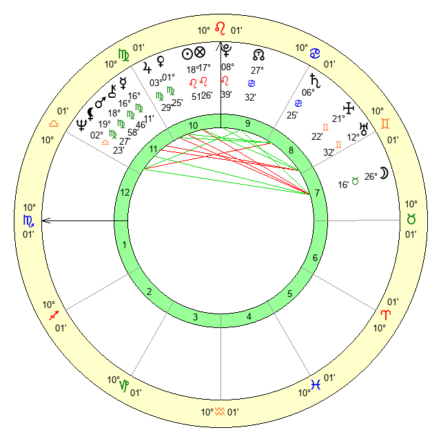 | Venus | 1 Virgo 26 | 13 Cancer 27 | 11 Sagittarius 0 |