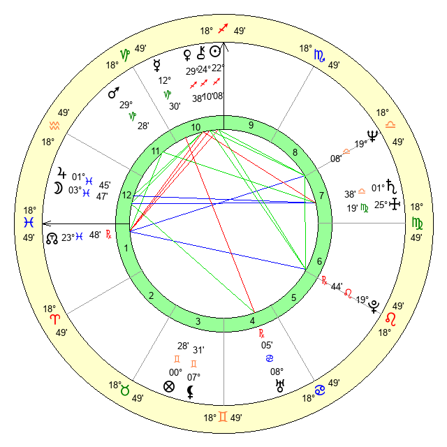 | Moon | 3 Pisces 46 | 24 Libra 34 | 21 Scorpio 51 |