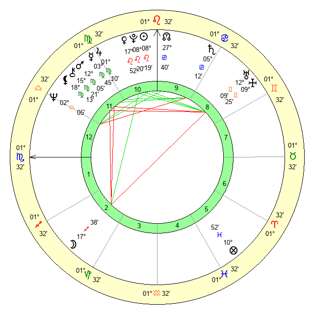 | Venus | 17 Leo 53 | 0 Cancer 38 | 27 Scorpio 33 |