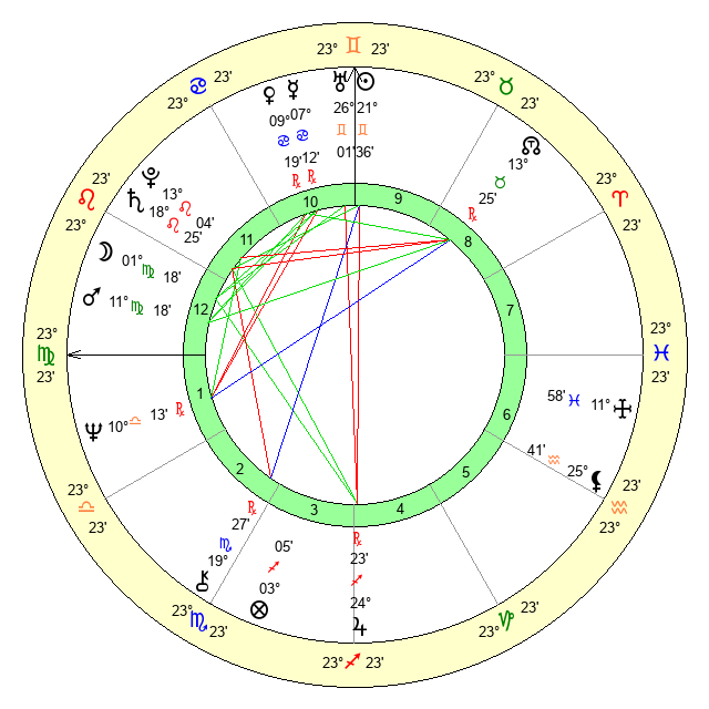 | Moon | 1 Virgo 22 | 7 Capricorn 55 | 16 Gemini 27 |