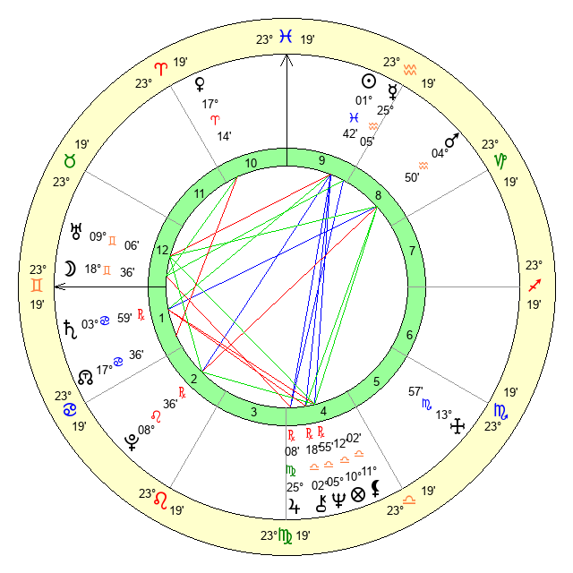 | Moon | 18 Gemini 39 | 1 Sagittarius 51 | 18 Taurus 40 |