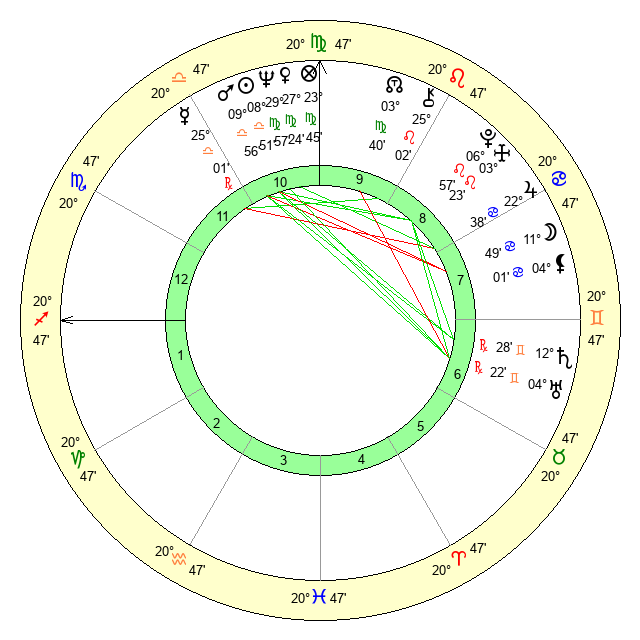 | Saturn | 12 Gemini 46 | 27 Pisces 31 | 7 Gemini 33 |