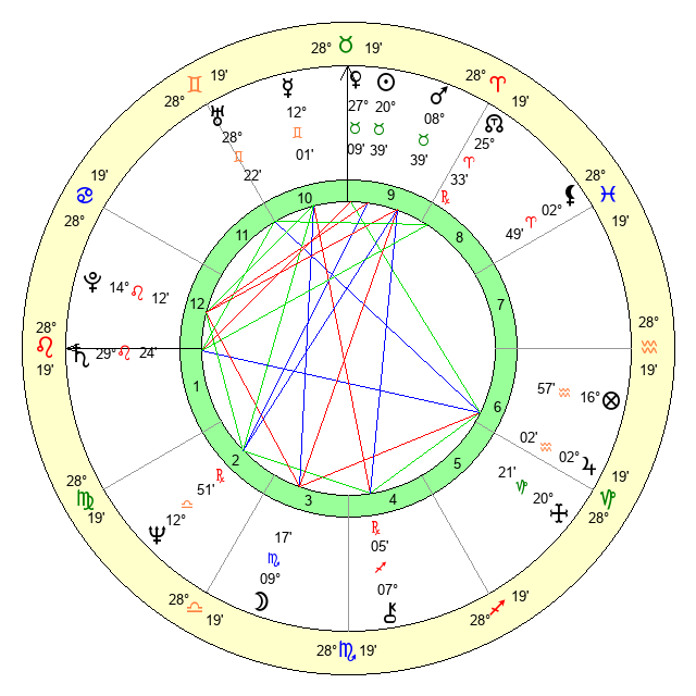 | Saturn | 29 Leo 55 | 28 Pisces 47 | 5 Virgo 26 |