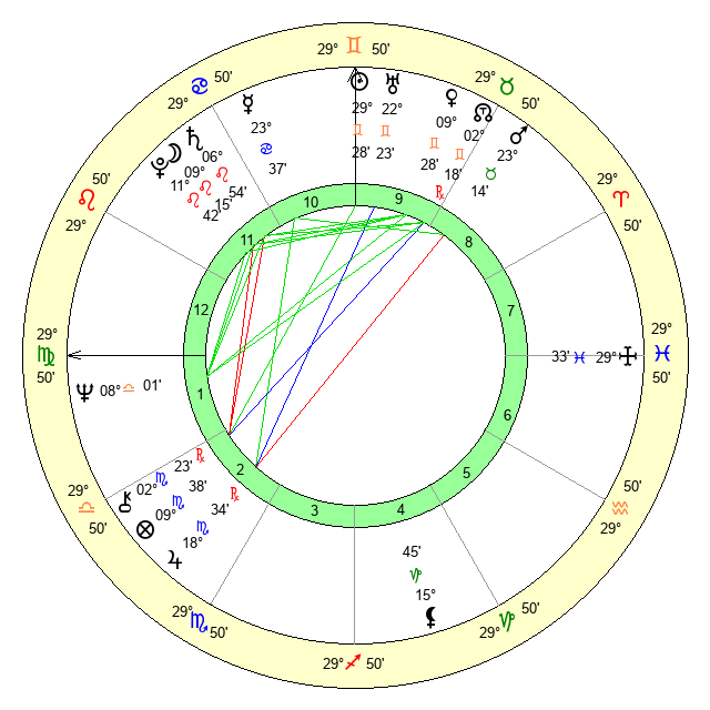 | Moon | 9 Leo 18 | 9 Taurus 9 | 8 Gemini 15 |