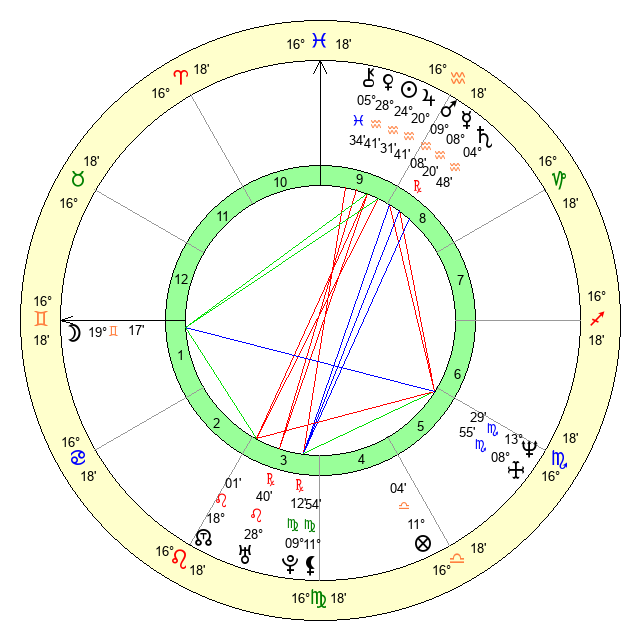 | Moon | 19 Gemini 20 | 8 Virgo 8 | 1 Libra 30 |