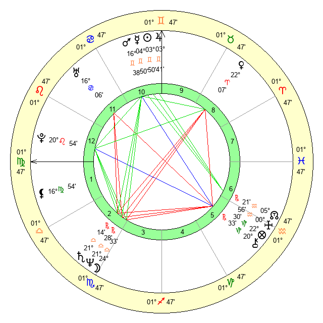 Mars | 16 Gemini 39 | 17 Leo 34 | 4 Leo 14 |