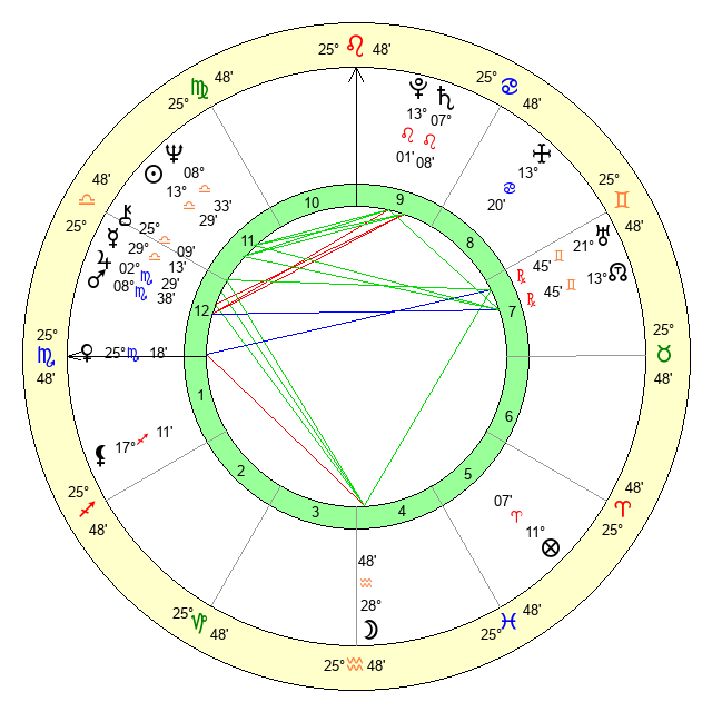 | Venus | 25 Scorpio 17 | 21 Virgo 56 | 22 Scorpio 18 |